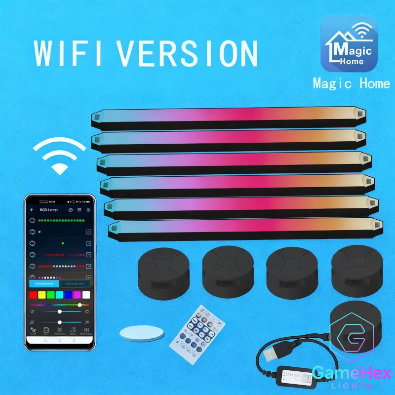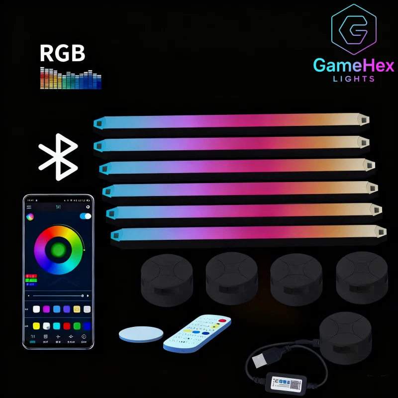 Transform your room lighting with Gaming Hexagon Lights, the modern RGBIC modular LED bar system designed for gamers, streamers, studio creators, and modern home enthusiasts. Built with advanced smart chip control, it delivers ultra-smooth light transitions and infinite design possibilities for personal space styling.