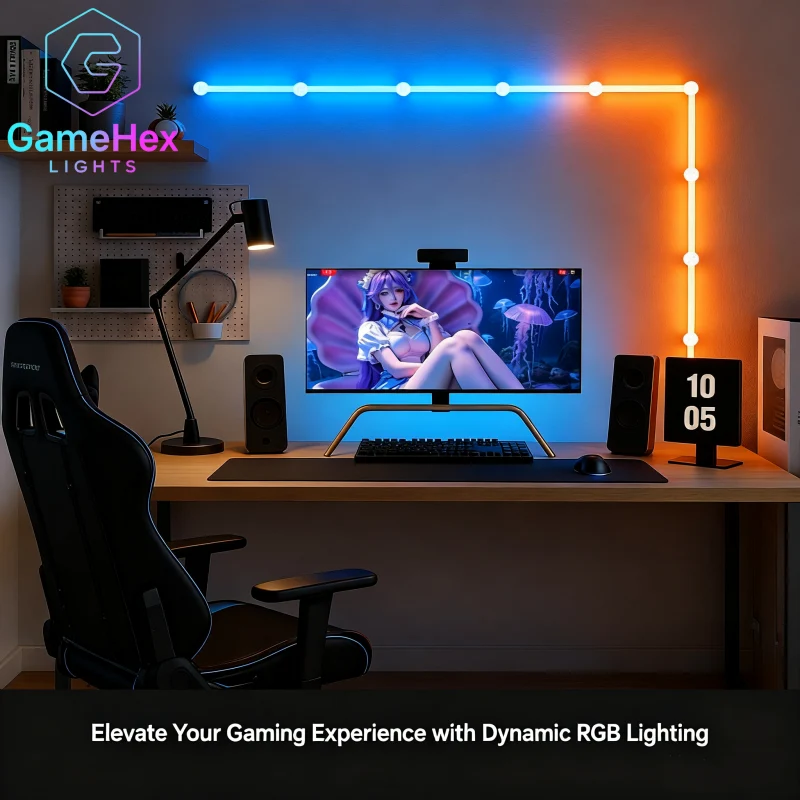 RGBIC gradient flow produces multi-tone color waves instead of single-color lighting, offering deeper immersion for FPS, RPG, racing, and cyber-tech gaming themes. Your audience will notice — especially if you are streaming.