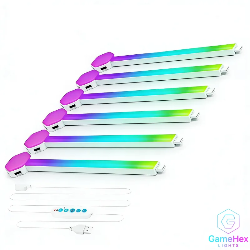 Ultra-Bright RGBIC SyncGlow LED Ambience Bars (6-Pack) – DIY Modular Light Sticks with App Control & Music Sync Mode